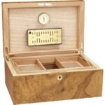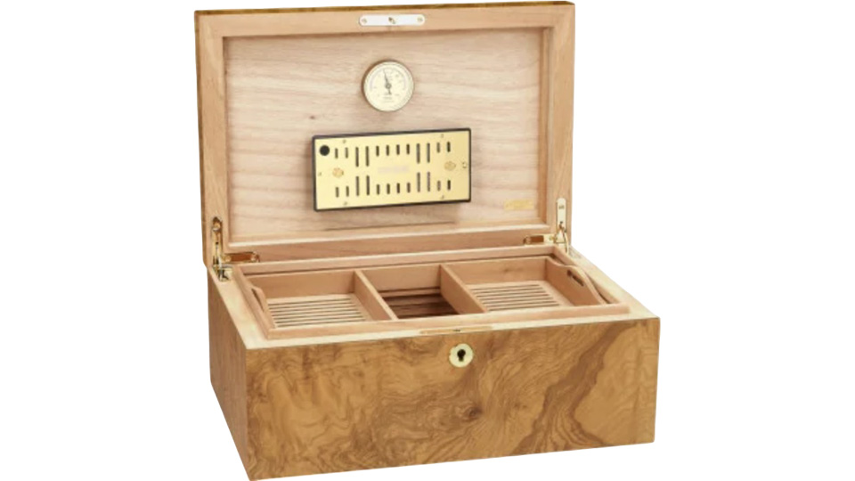 Το μοντέλο Olive Ash εντυπωσιάζει με ένα ζεστό καφέ χρώμα με εξαιρετικό κόκκο, δημιουργώντας ένα ιδιαίτερα κομψό αποτέλεσμα και συνδυάζεται τέλεια σε κάθε ατμόσφαιρα. Οι υγραντήρες Grande χωρούν έως και 150 πούρα, προσφέροντας άφθονο χώρο για τη συλλογή των απαιτητικών aficionados.