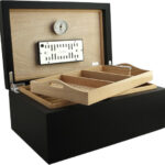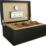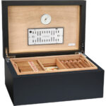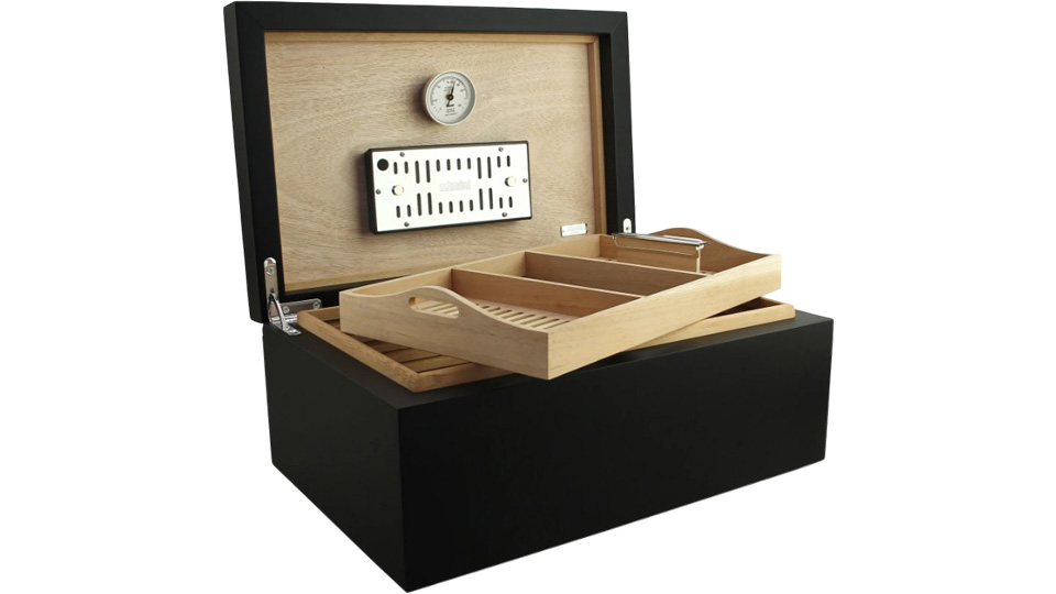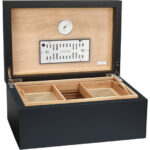 Το πολυστρωματικό φινίρισμα μαύρης λάκας του υγραντήρα Torino Deluxe και ο συμπαγής αλλά κομψός σχεδιασμός το συνιστούν μια όμορφη προσθήκη σε κάθε σπίτι ή γραφείο. Το άρτια κατασκευασμένο best-seller διαθέτει εξαιρετικά ισχυρούς επιχρυσωμένους μεντεσέδες τεταρτημορίου για πρόσθετη σταθερότητα, καθώς και εσωτερικό ισπανικό καπλαμά κέδρου στον ατμό, ιδανικό για τη συντήρηση έως και 100-125 πούρων.