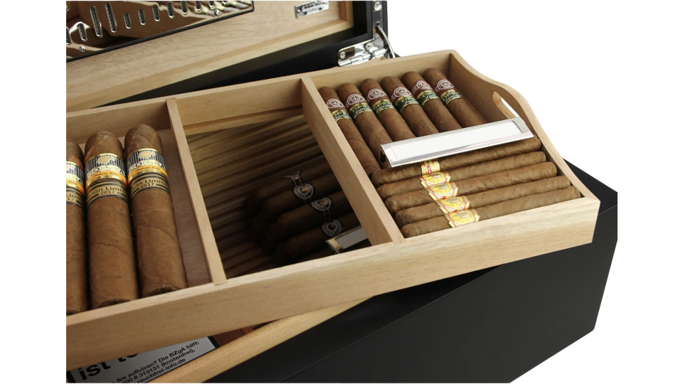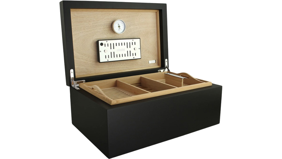 - Προ-βαθμονομημένο υγρόμετρο τρίχας υψηλής ακρίβειας, βελτιστοποιημένο για αποθήκευση πούρων.