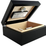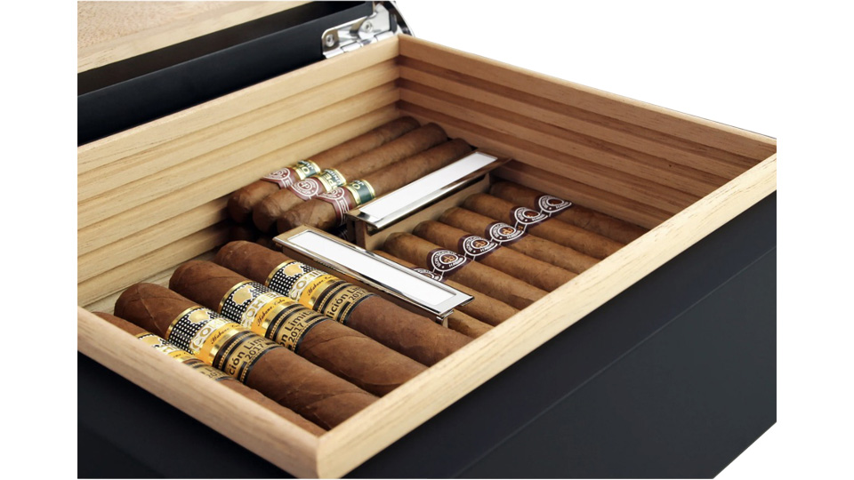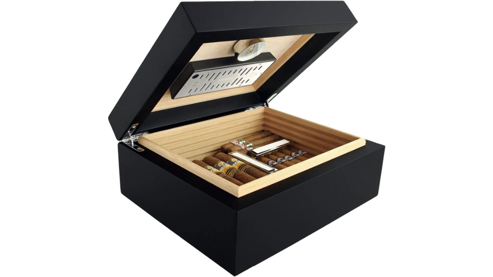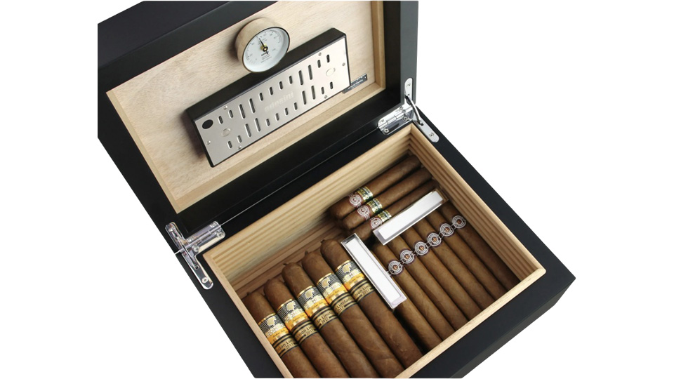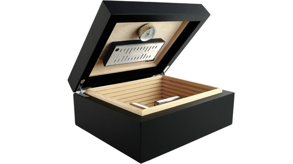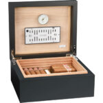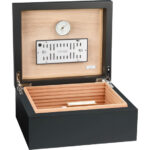 Το πολυστρωματικό φινίρισμα μαύρης λάκας του υγραντήρα Torino Deluxe και ο συμπαγής αλλά κομψός σχεδιασμός το συνιστούν μια όμορφη προσθήκη σε κάθε σπίτι ή γραφείο. Το άρτια κατασκευασμένο best-seller διαθέτει εξαιρετικά ισχυρούς επιχρυσωμένους μεντεσέδες τεταρτημορίου για πρόσθετη σταθερότητα, καθώς και εσωτερικό ισπανικό καπλαμά κέδρου στον ατμό, ιδανικό για τη συντήρηση έως και 75 πούρων.