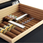 - Προ-βαθμονομημένο υγρόμετρο τρίχας υψηλής ακρίβειας, βελτιστοποιημένο για αποθήκευση πούρων.