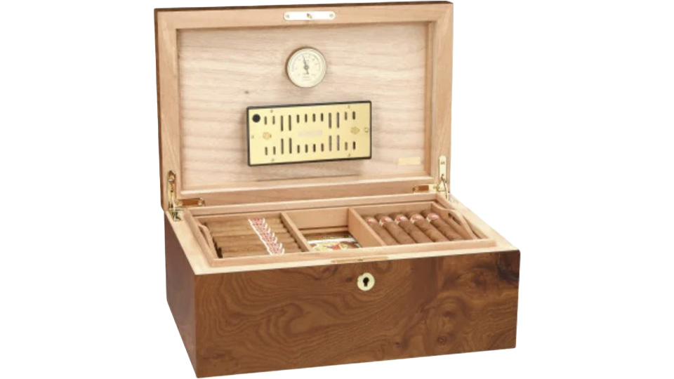 Το μοντέλο Elm εντυπωσιάζει με τον ζεστό καφέ τόνο με ευδιάκριτους κόκκους, δημιουργώντας μια ιδιαίτερα κομψή εμφάνιση. Οι υγραντήρες Grande χωρούν έως και 150 πούρα, προσφέροντας άφθονο χώρο για τη συλλογή των απαιτητικών aficionados.