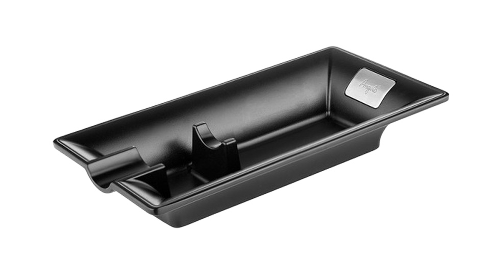 Μεταλλικό τασάκι Angelo για 1 πούρο σε βουρτσισμένο μαύρο χρώμα με το λογότυπο Angelo σε χρυσή απόχρωση.