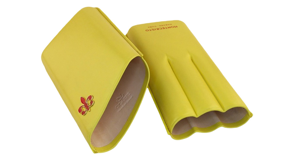 ‘Ενα αυθεντικό αξεσουάρ από τη Habanos! Ιδιαίτερη πουροθήκη σε έντονο κίτρινο χρώμα με κόκκινη στάμπα Montecristo από γνήσιο δέρμα.
