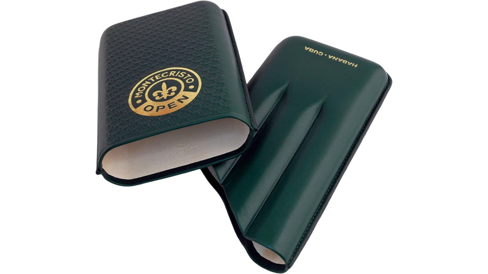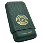‘Ενα αυθεντικό αξεσουάρ από τη Habanos! Ιδιαίτερη πουροθήκη σε πράσινο χρώμα με χρυσή στάμπα Montecristo Open και το Fleur de Lis από γνήσιο δέρμα.