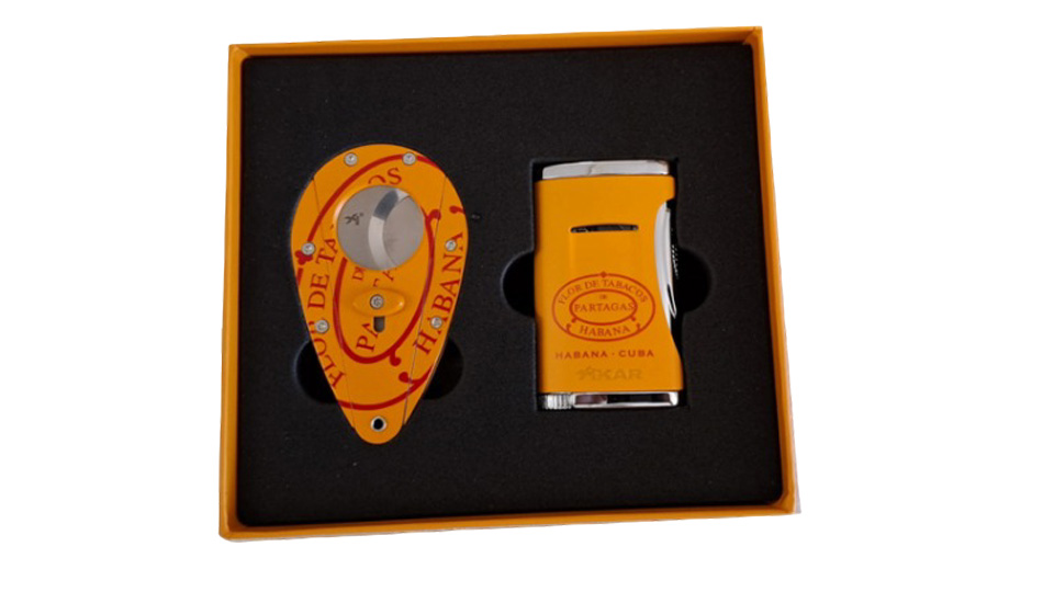Το σετ πουροκόπτης και αναπτήρας HABANOS Xikar – Partagas αποτελείται από δύο απαραίτητα αξεσουάρ για καπνιστές πούρων από τον διάσημο κατασκευαστή Xikar σε κίτρινο χρώμα και το λογότυπο Partagas. Ο αναπτήρας χρησιμοποιεί μονή Jet φλόγα και είναι αντιανεμικός. Ο πολύ κομψός κόπτης διπλής λεπίδας έρχεται σε κίτρινο φινίρισμα. Η λεπίδα της γκιλοτίνας είναι κατασκευασμένη από ανοξείδωτο χάλυβα και η ιδιαίτερη σχεδίαση καθιστά αυτόν τον κόφτη εύκολο στη χρήση με το ένα χέρι.