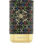 Θήκη για 3 πούρα από επικαλυμμένο καμβά, ανάγλυφο με το πολύχρωμο μονόγραμμα X, σε συνδυασμό με δέρμα μοσχαριού. Ανάγλυφο λογότυπο Opus X Fuente σε χρυσό επάνω στη θήκη. Χρυσή βάση με χαραγμένο το λογότυπο S.T. Dupont στο μπροστινό μέρος.
