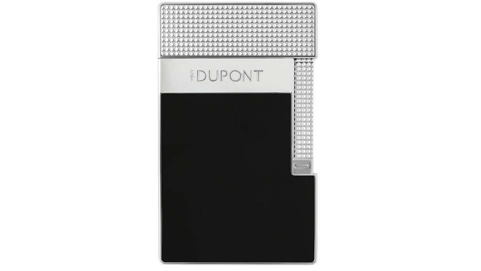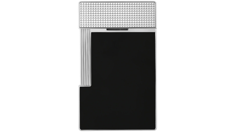 Επιτραπέζιος αναπτήρας από γυαλιστερή μαύρη λάκα, διακοσμημένος με καπάκι guilloché (diamond-point). Διαθέτει σκανδάλη με μηχανισμό ολίσθησης και πίεσης, ώστε να εναλλάσσετε ανάμεσα σε ανθεκτική στον άνεμο κίτρινη φλόγα και φλόγα torch. Φινίρισμα σε χρώμιο.