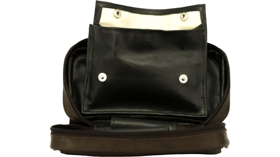 Η θήκη αυτή της Marvel είναι κατασκευασμένη από 100% γνήσιο δέρμα. Είναι πρακτική, κομψή, σαν μικρό τσαντάκι χειρός. Στο εσωτερικό της, μπορούν να τοποθετηθούν δύο μεγάλες πίπές (ή περισσότερες κανονικού μεγέθους), καπνός και διάφορα σύνεργα. Ο καπνιστής πίπας έχει την επιλογή να τοποθετήσει άνετα το σακουλάκι καπνού ή να αδειάσει τον καπνό στο κουμπωτό πουγκί που διαθέτει.