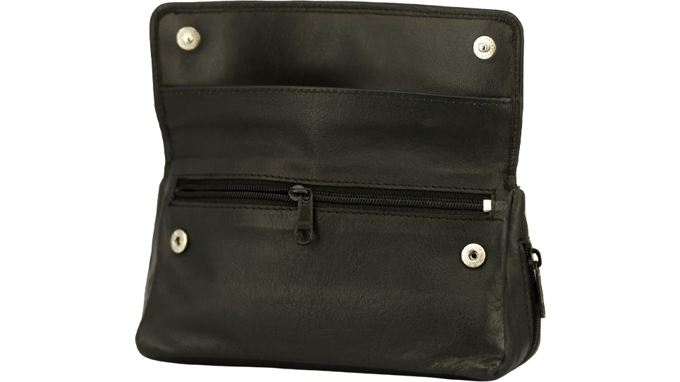 Αυτή η θήκη πίπας είναι εύκολη στη χρήση της και πολύ ευρύχωρη τόσο για τον καπνό όσο και για τις πίπες. Ο χώρος που διαθέτει επιτρέπει στον καπνιστή να αναμειγνύει και να ταξινομεί εύκολα τον καπνό και η εσωτερική επένδυση από ειδικό latex διασφαλίζει την καλύτερη συντήρηση του. Στο κάτω μέρος της θήκης υπάρχει μια ευρύχωρη θέση που κλείνει με φερμουάρ για την τοποθέτηση 2-3 πιπών ανάλογα με το μέγεθος τους.