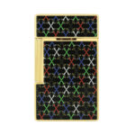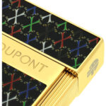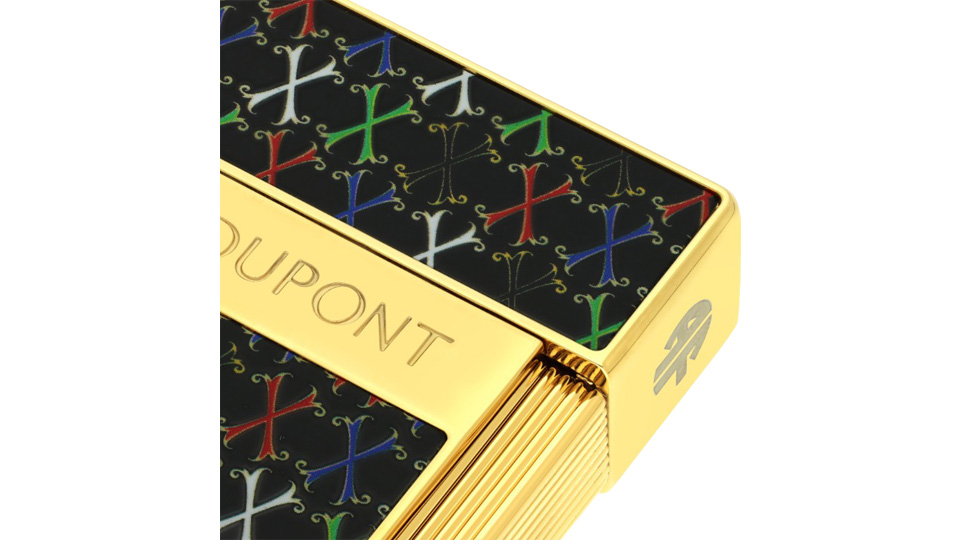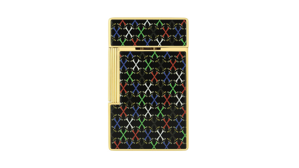 Αναπτήρας Biggy – Μαύρη λάκα, διακοσμημένη με το πολύχρωμο μονογράμμα X και το τυπωμένο έμβλημα Opus X Fuente με γυαλιστερό χρυσό φινίρισμα