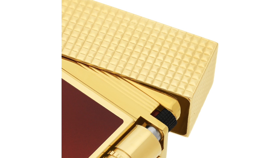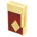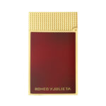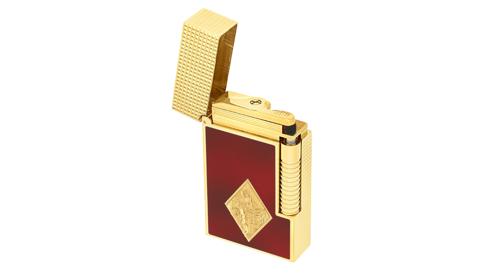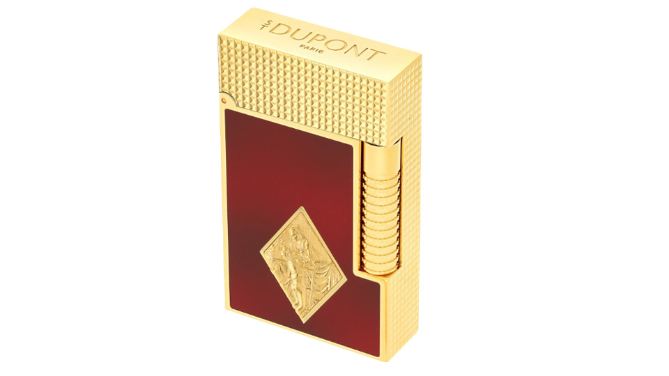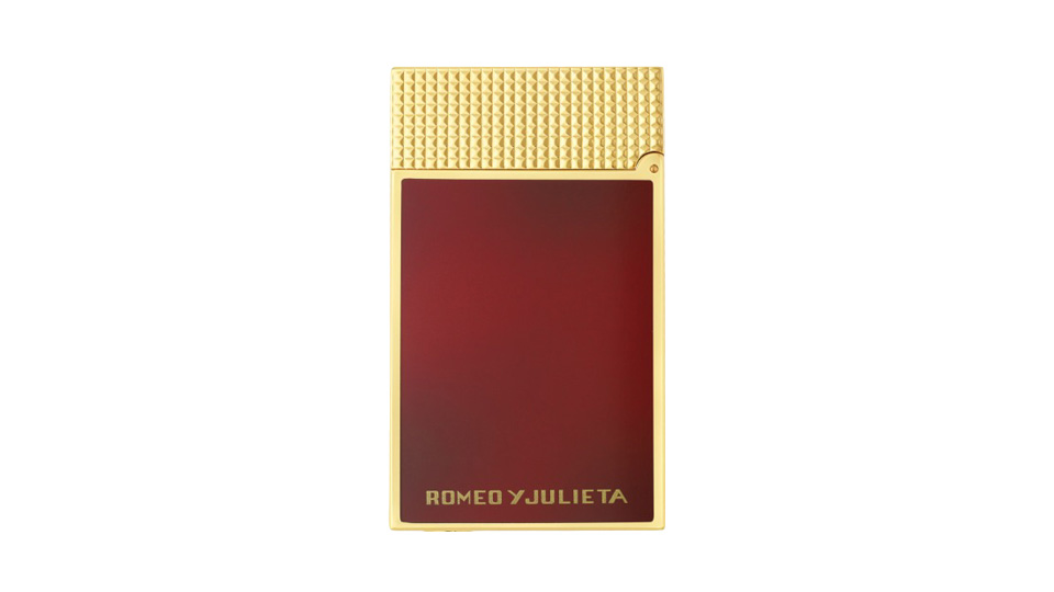 Ο αναπτήρας Le Grand Dupont Cling σε κόκκινη λάκα με γυαλιστερό φινίρισμα shiny popote, διακοσμημένος με μενταγιόν σε χρυσαφένιο φινίρισμα με το μοτίβο Romeo y Julieta. Καπάκι με διαμαντοειδές γκιγιόσε. Φινίρισμα κίτρινου χρυσού. Εξοπλισμένος με διπλό σύστημα ανάφλεξης για επιλογή κίτρινης ή μπλε φλόγας.