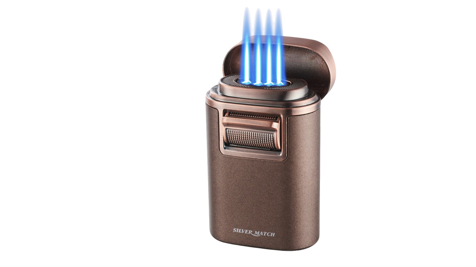 Silver Match – Monaco Τετραπλός Blue Flame Αναπτήρας, με Βάση πούρου