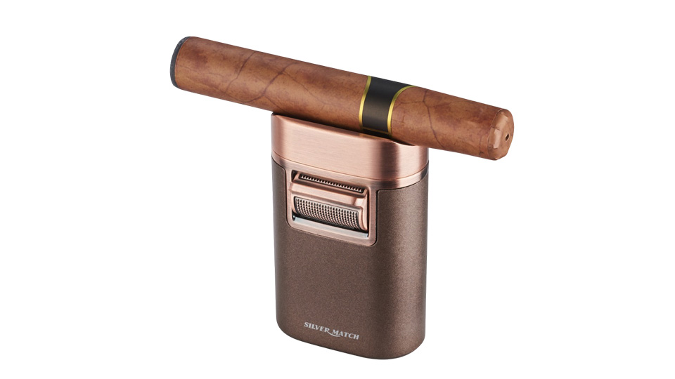 Μεταλλικός αναπτήρας Silver Match με εργονομικό σχεδιασμό με piezoelectric μηχανισμό, τετραπλή blue flame φλόγα και βάση πούρου.