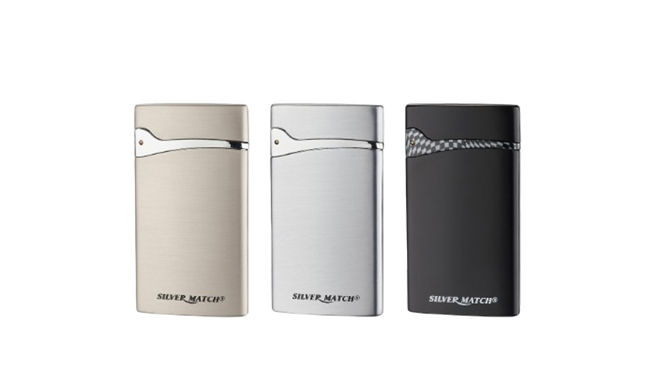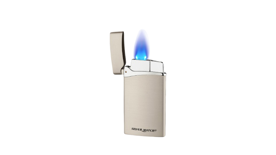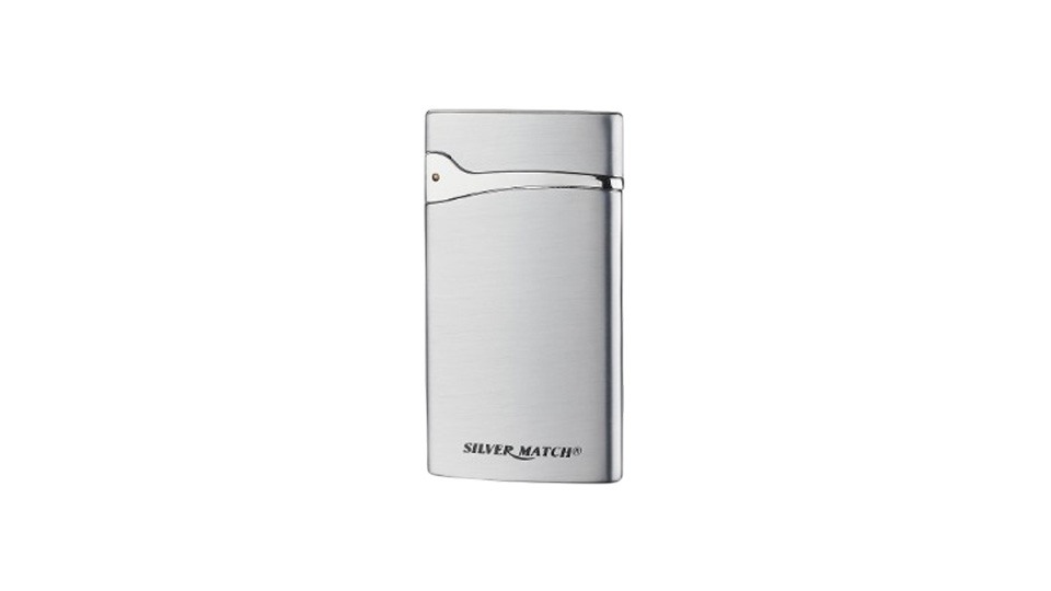 Μεταλλικός αναπτήρας Silver Match με εργονομικό σχεδιασμό με piezoelectric μηχανισμό και μονή επίπεδη φλόγα.