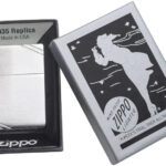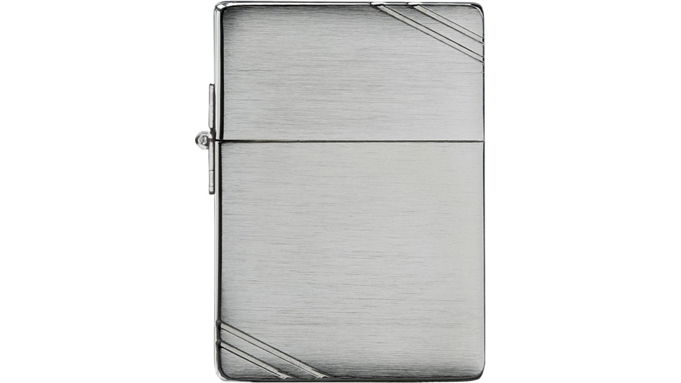 Αυτός ο αντιανεμικός αναπτήρας Brushed Chrome διαθέτει το περίβλημα 1935 Replica. Ένας εξωτερικός μεντεσές με τρία δαχτυλίδια ενώνει το καπάκι με το σώμα, με μια κενή κοίλη πρόκα που στερεώνει τον τροχό της τσακμακόπετρας στην εσωτερική μονάδα. Ο αναπτήρας αυτός διαθέτει επίπεδη βάση και ένα μοναδικό bottom stamp.