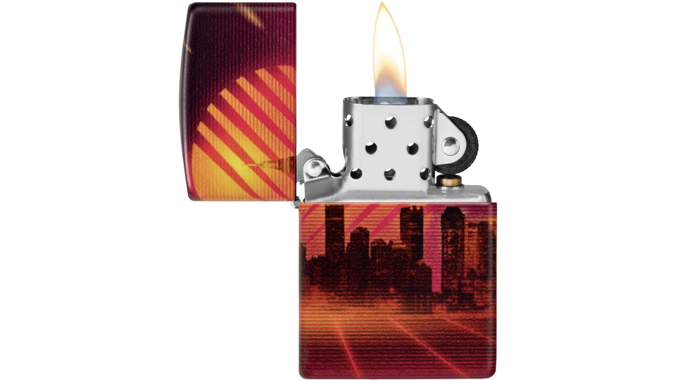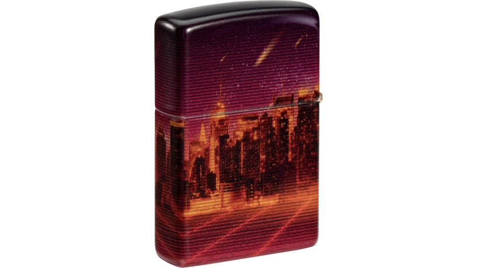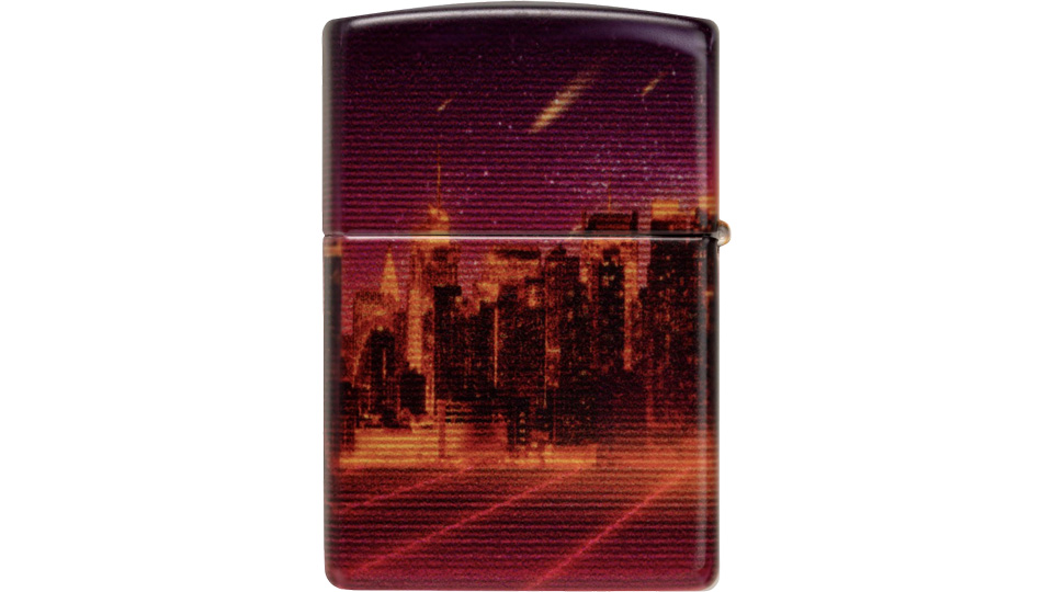 Ένα pixelated αστικό τοπίο περιβάλλει αδιάκοπα αυτόν τον φουτουριστικό αναπτήρα 540 Color, μεταφέροντάς σας κατευθείαν μέσα στο αγαπημένο σας βιντεοπαιχνίδι ή σε ταινία επιστημονικής φαντασίας.