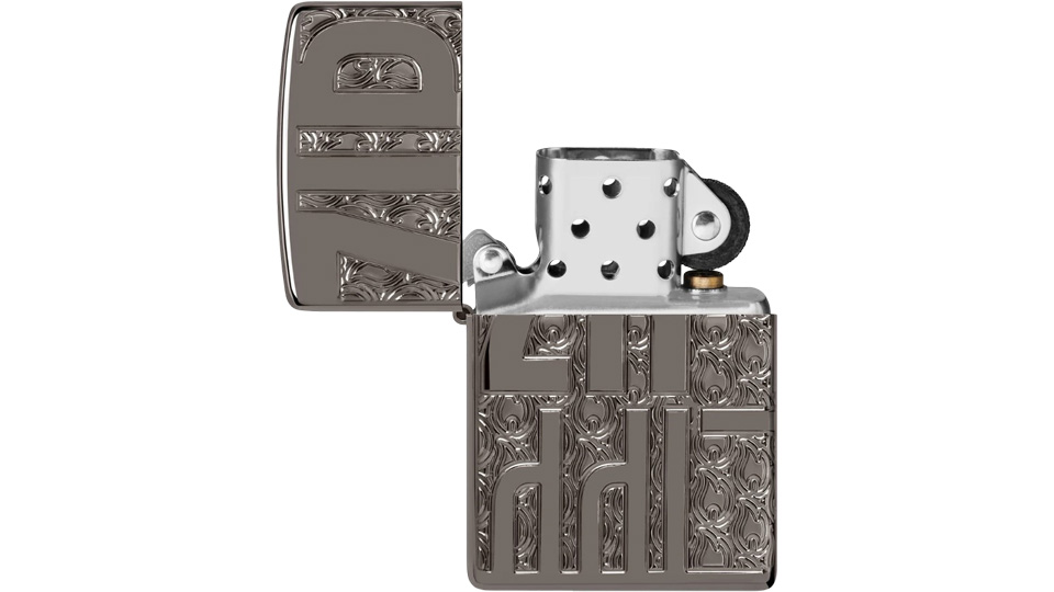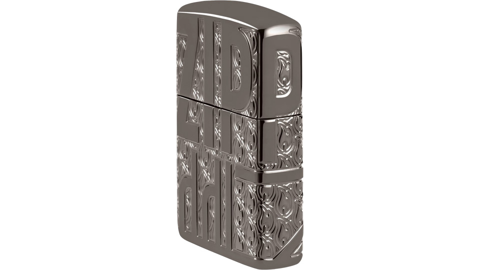 Αυτός ο εντυπωσιακός αναπτήρας Armor® Black Ice® διαθέτει πλούσια, ανάγλυφη χάραξη MultiCut, η οποία αποκαλύπτει ένα έντονο μοτίβο Zippo στον αρνητικό χώρο του σχεδίου.
