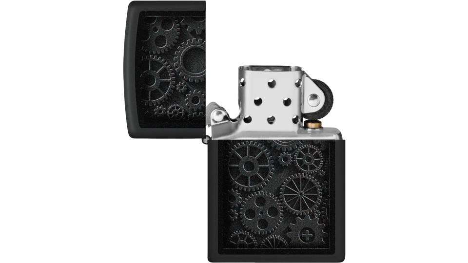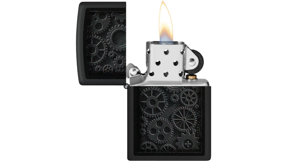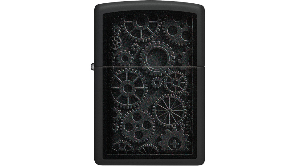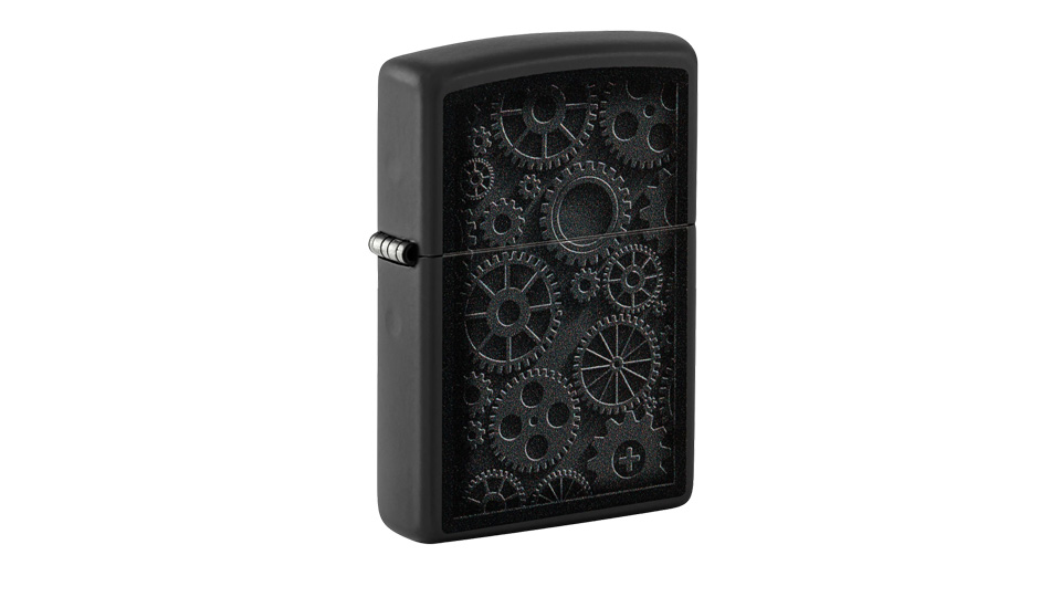 Ανθεκτικά γρανάζια τρίβονται και αναδεύονται σε όλη την επιφάνεια αυτού του κλασικού αναπτήρα Black Matte, σε ένα μονοχρωματικό σχέδιο Color Image.
