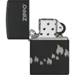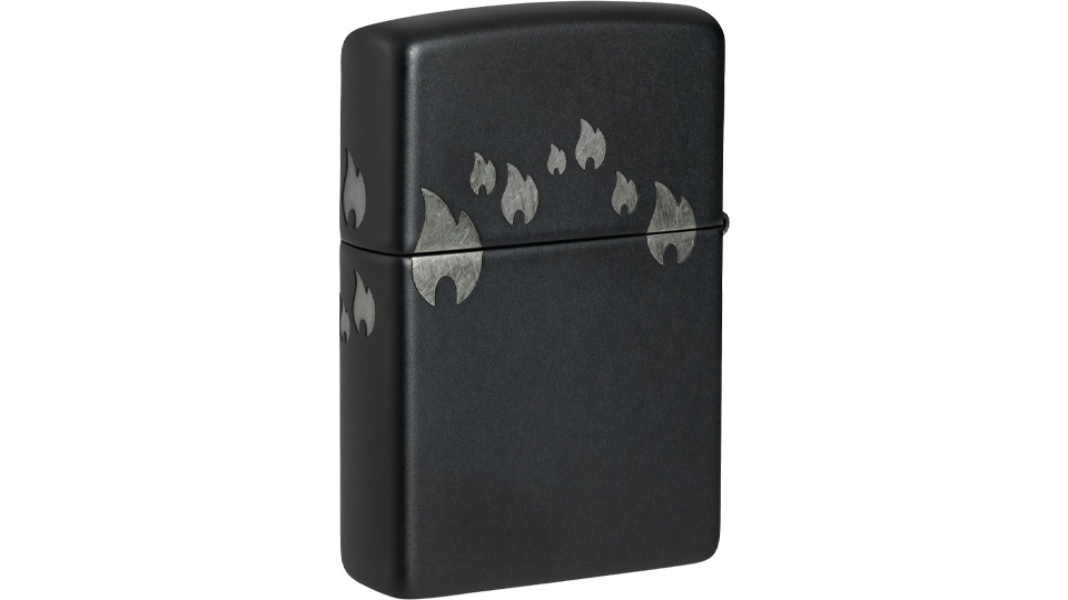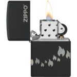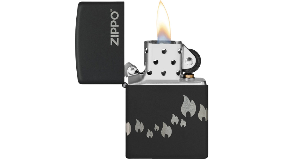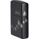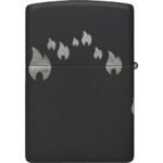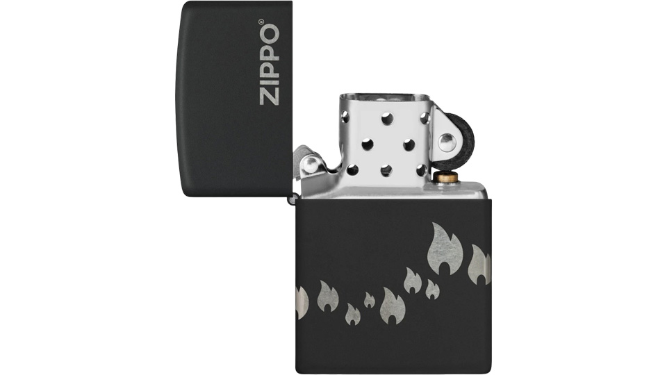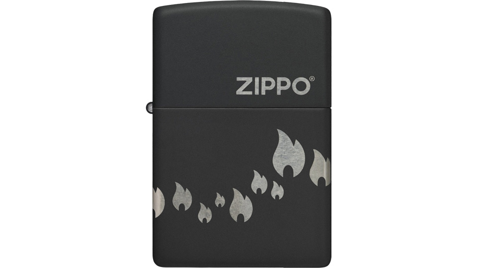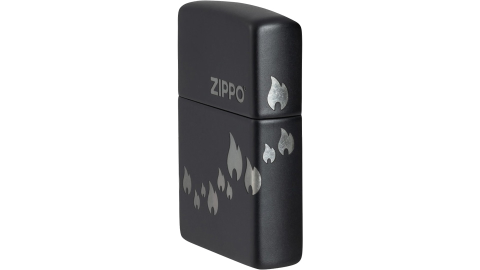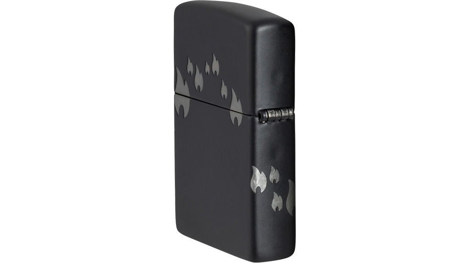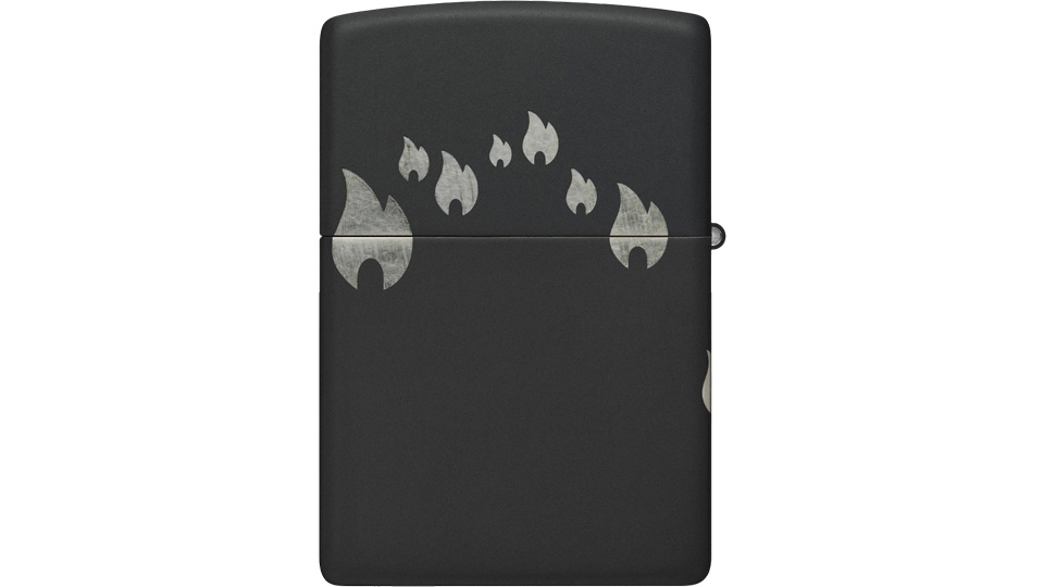 Μια παρέλαση από εικονίδια της φλόγας Zippo «χορεύει» γύρω από όλες τις πλευρές αυτού του κλασικού αναπτήρα Black Matte, σε ένα λιτό σχέδιο Laser 360°, το οποίο ενσωματώνει και το λογότυπο Zippo στο καπάκι του αναπτήρα.